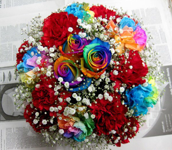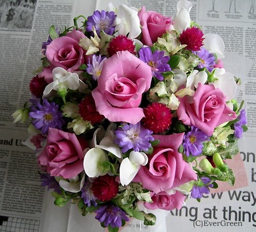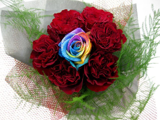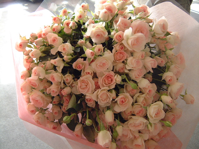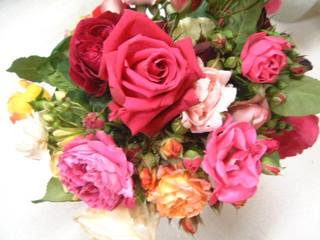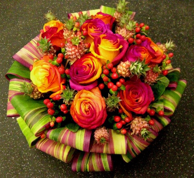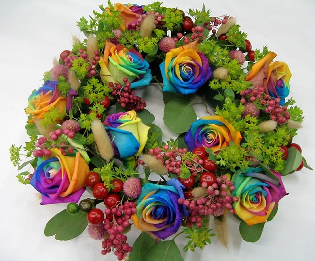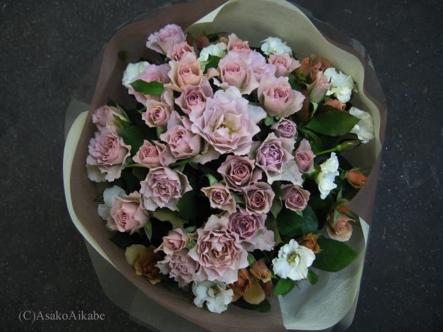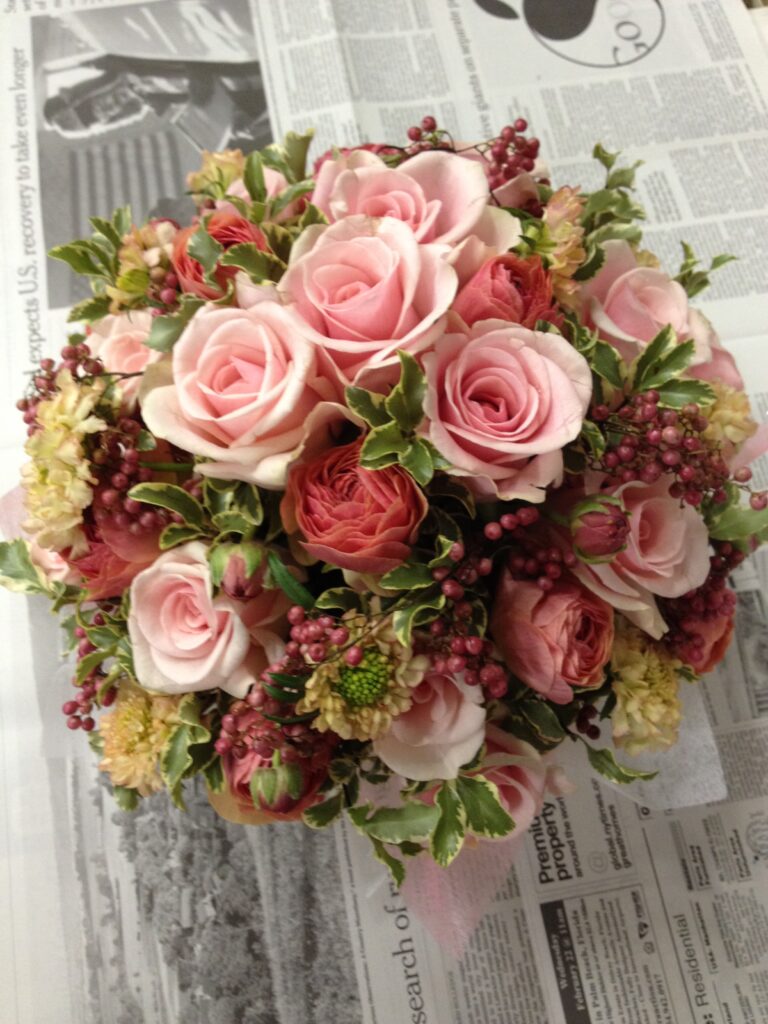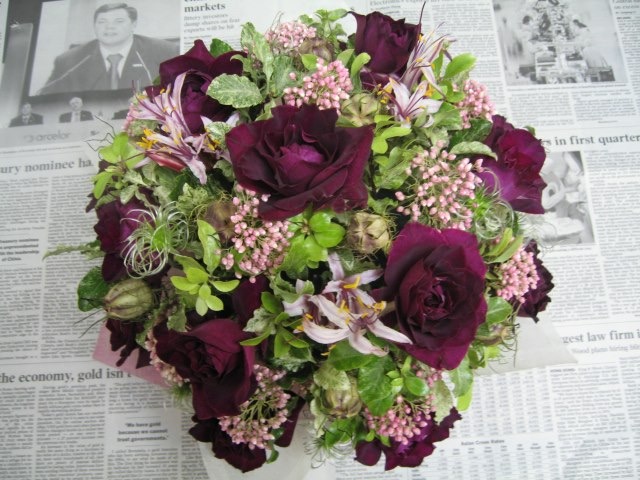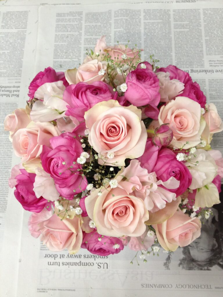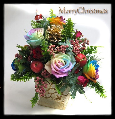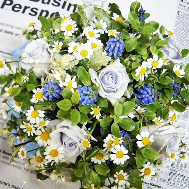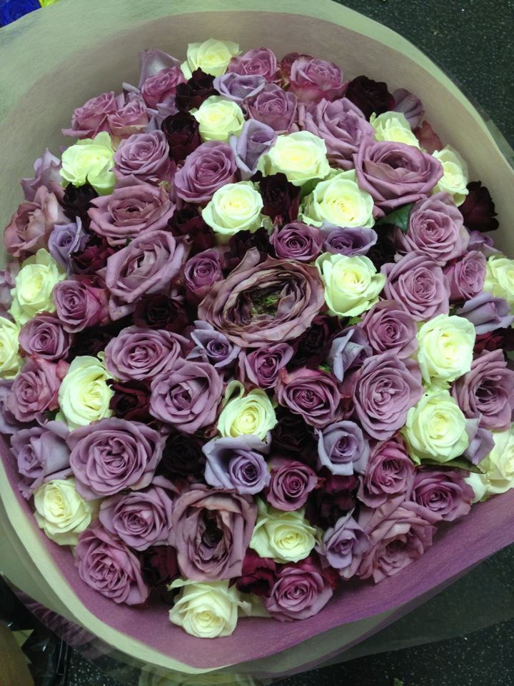 バラのあらゆる色、形、青いバラ、レインボーローズを花束、アレンジでお届けしました。