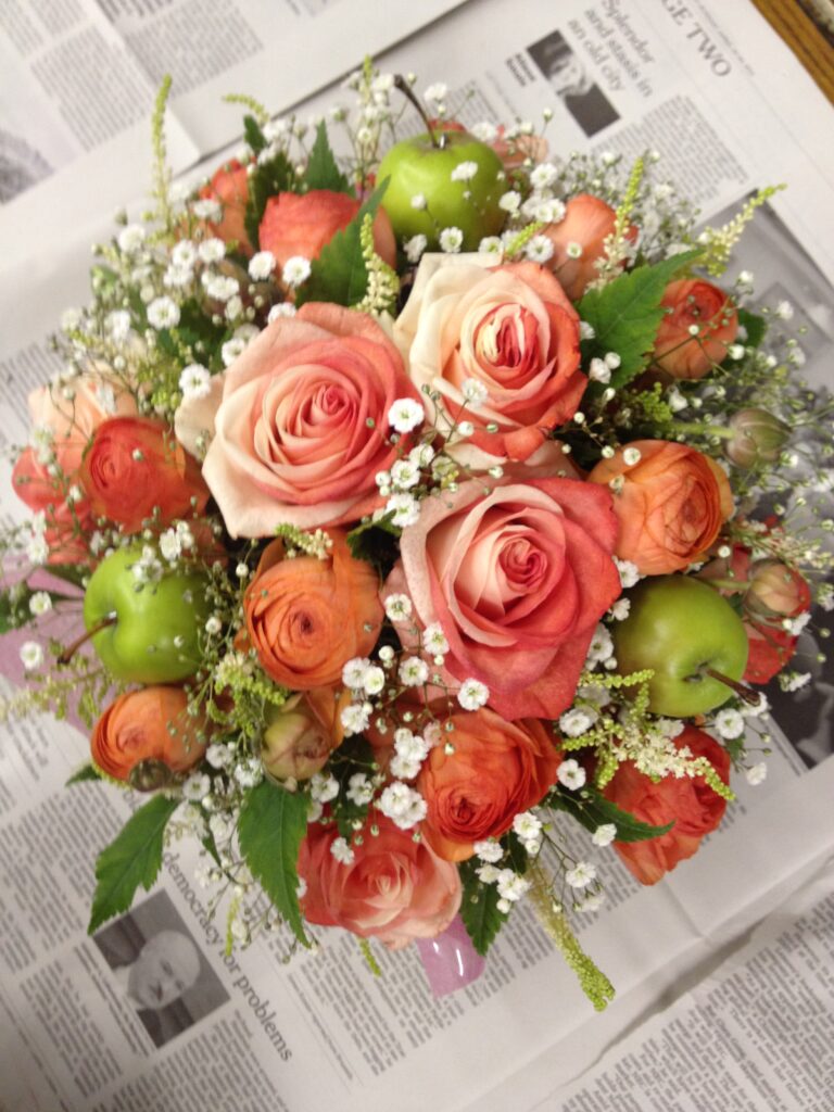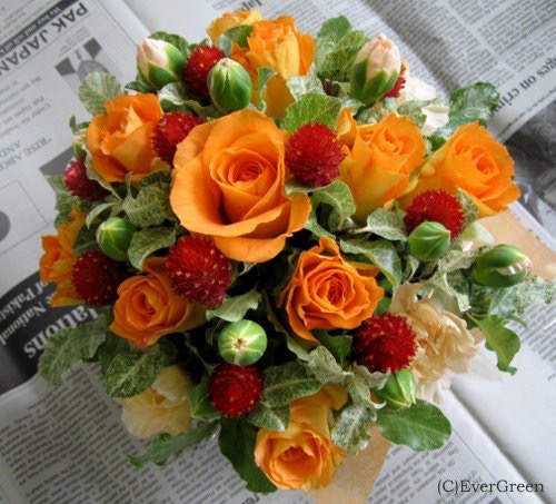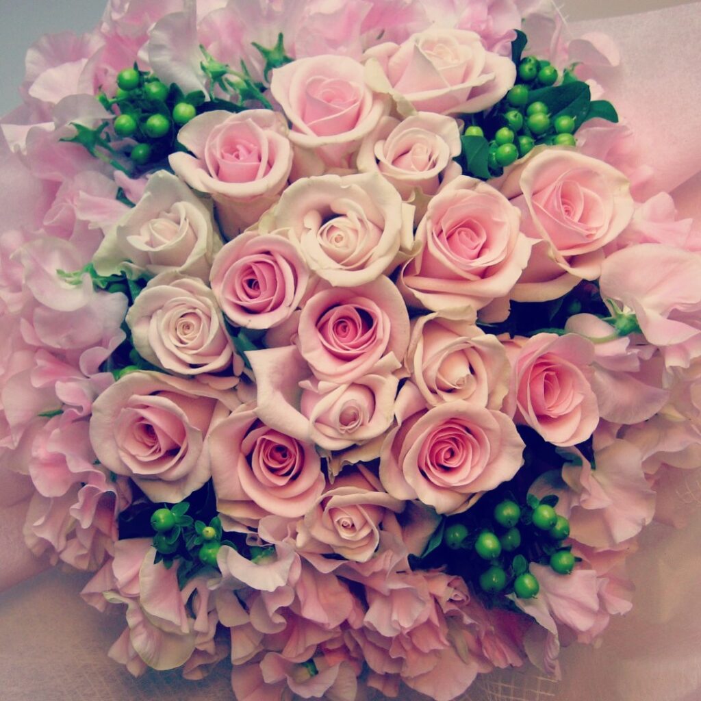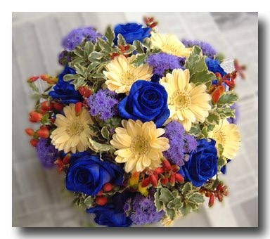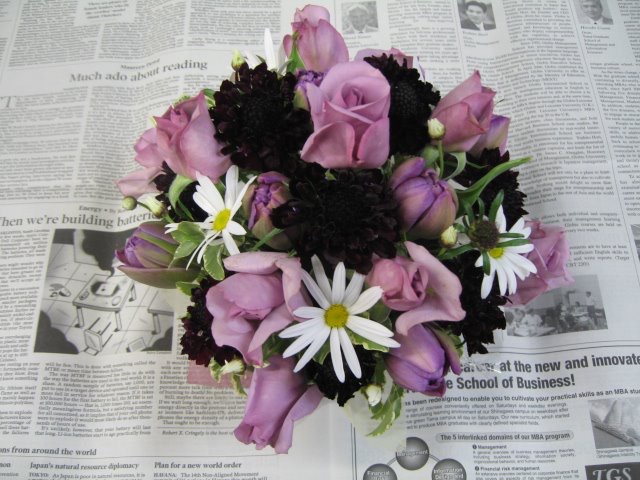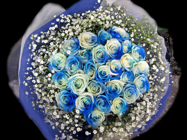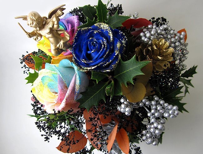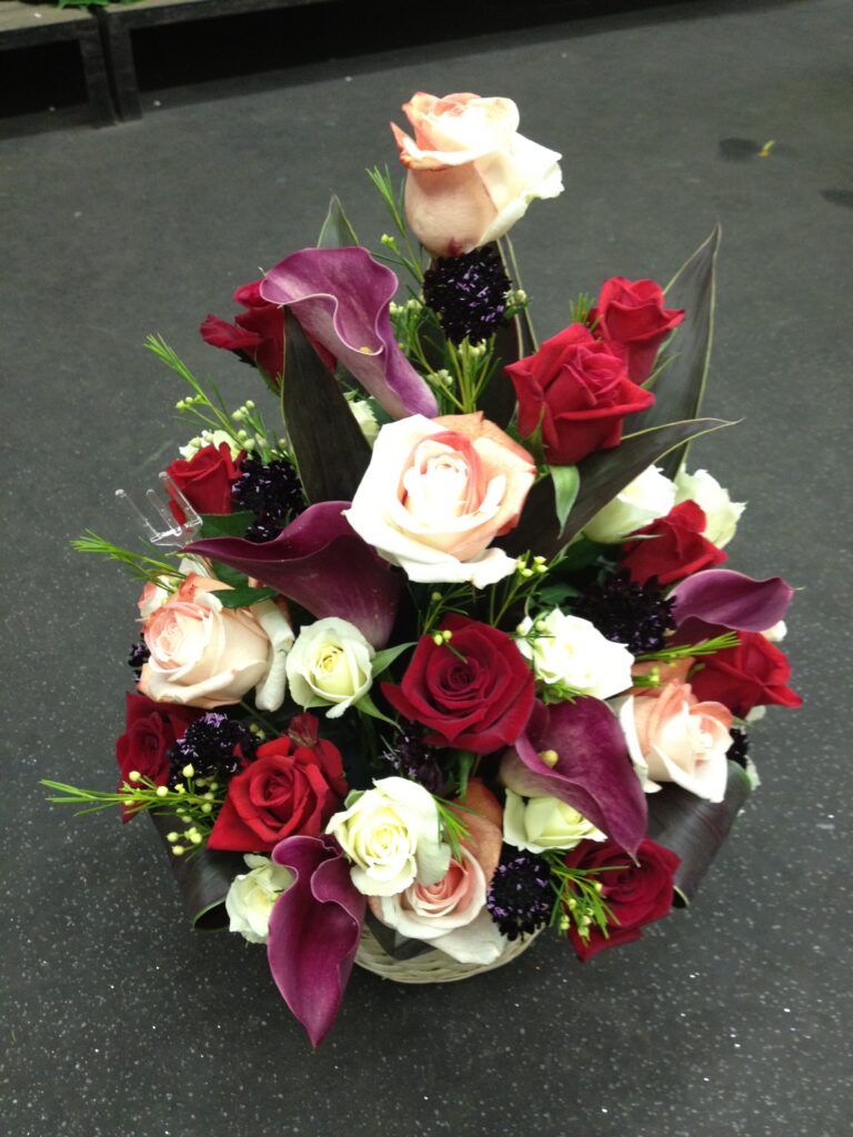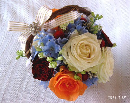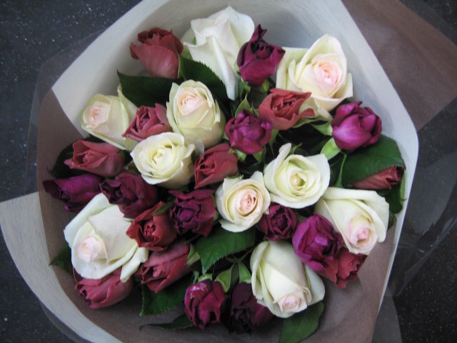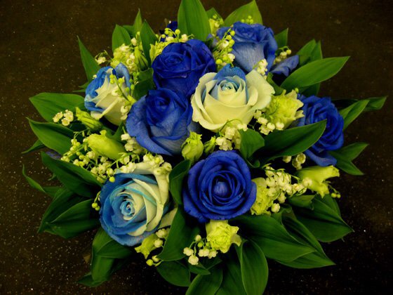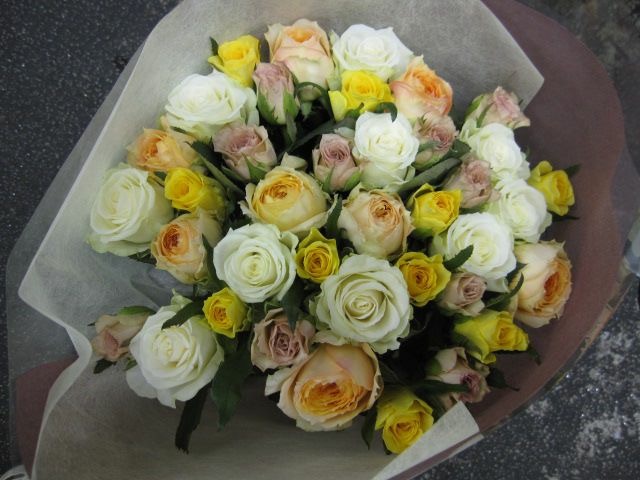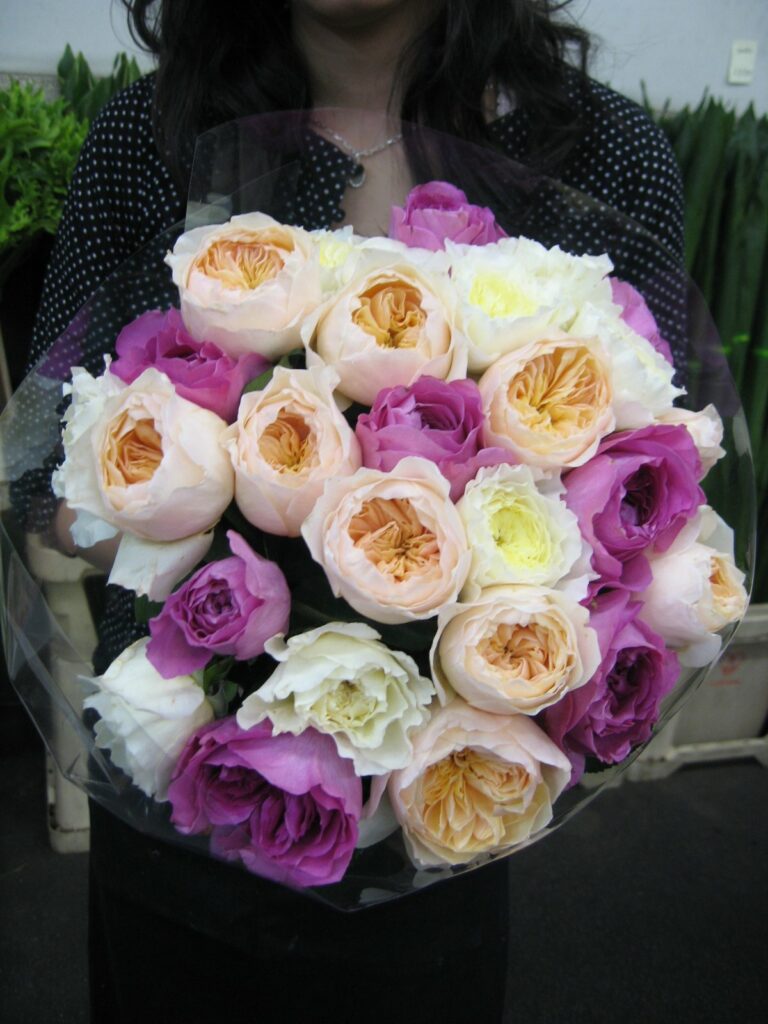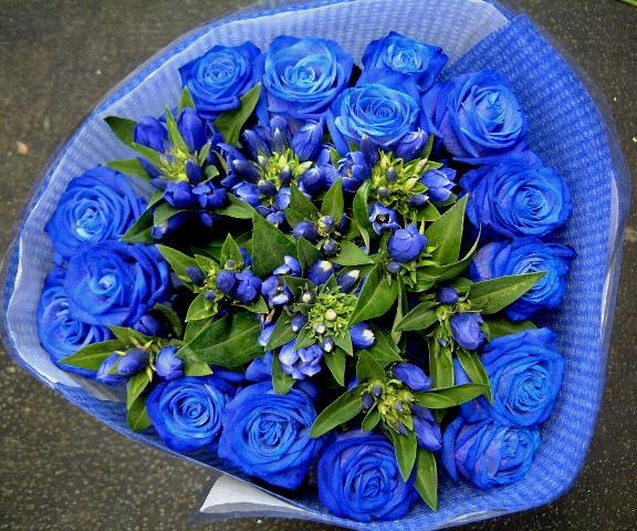 バラのあらゆる色、形、青いバラ、レインボーローズを花束、アレンジでお届けしました。