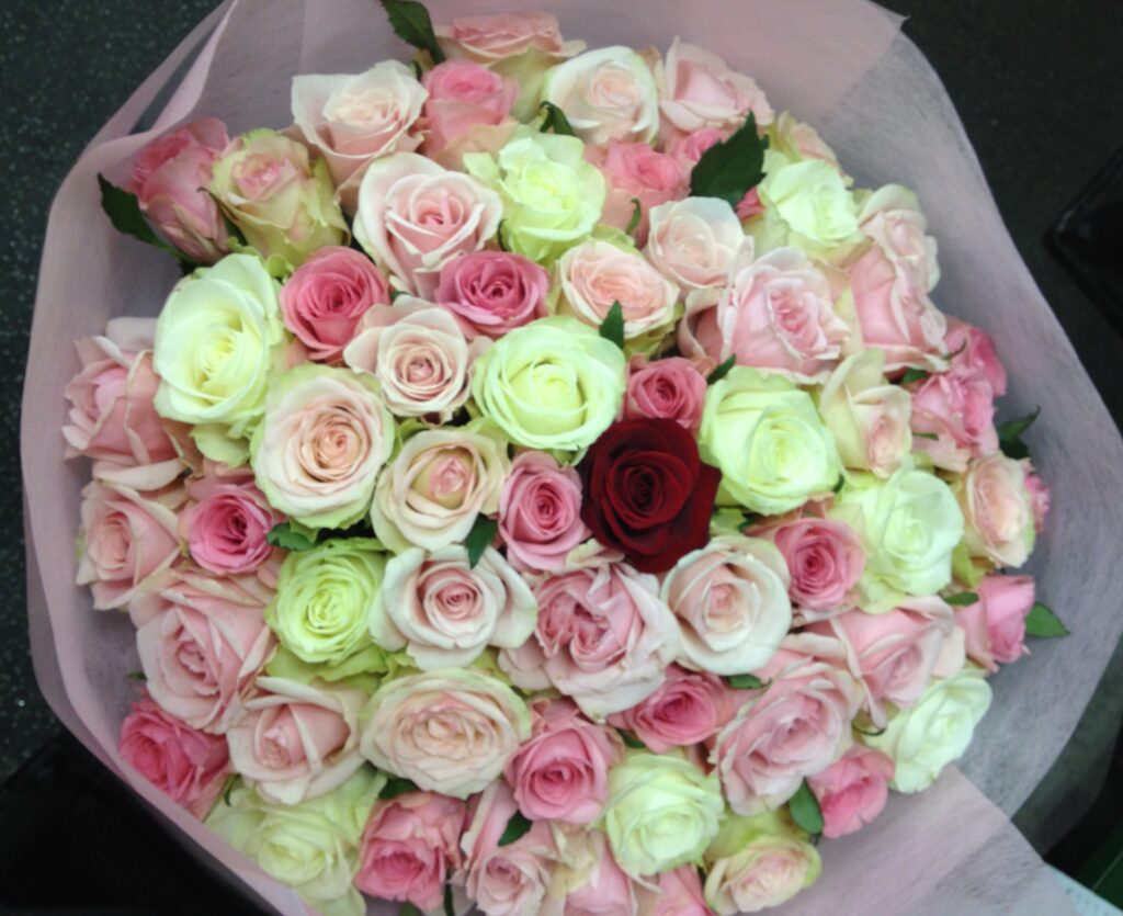 The sales site was named “Rose Market”. We delivered roses in every colour and shape, including blue roses and rainbow roses, as bouquets and arrangements.